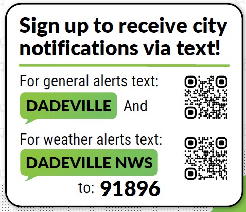 The City of Dadeville is excited to launch TextMyGov, a new, smart  text messaging service! Residents can receive important notifications and  text the city to find specific information. For more information about  TextMyGov, please visit https://textmygov.com